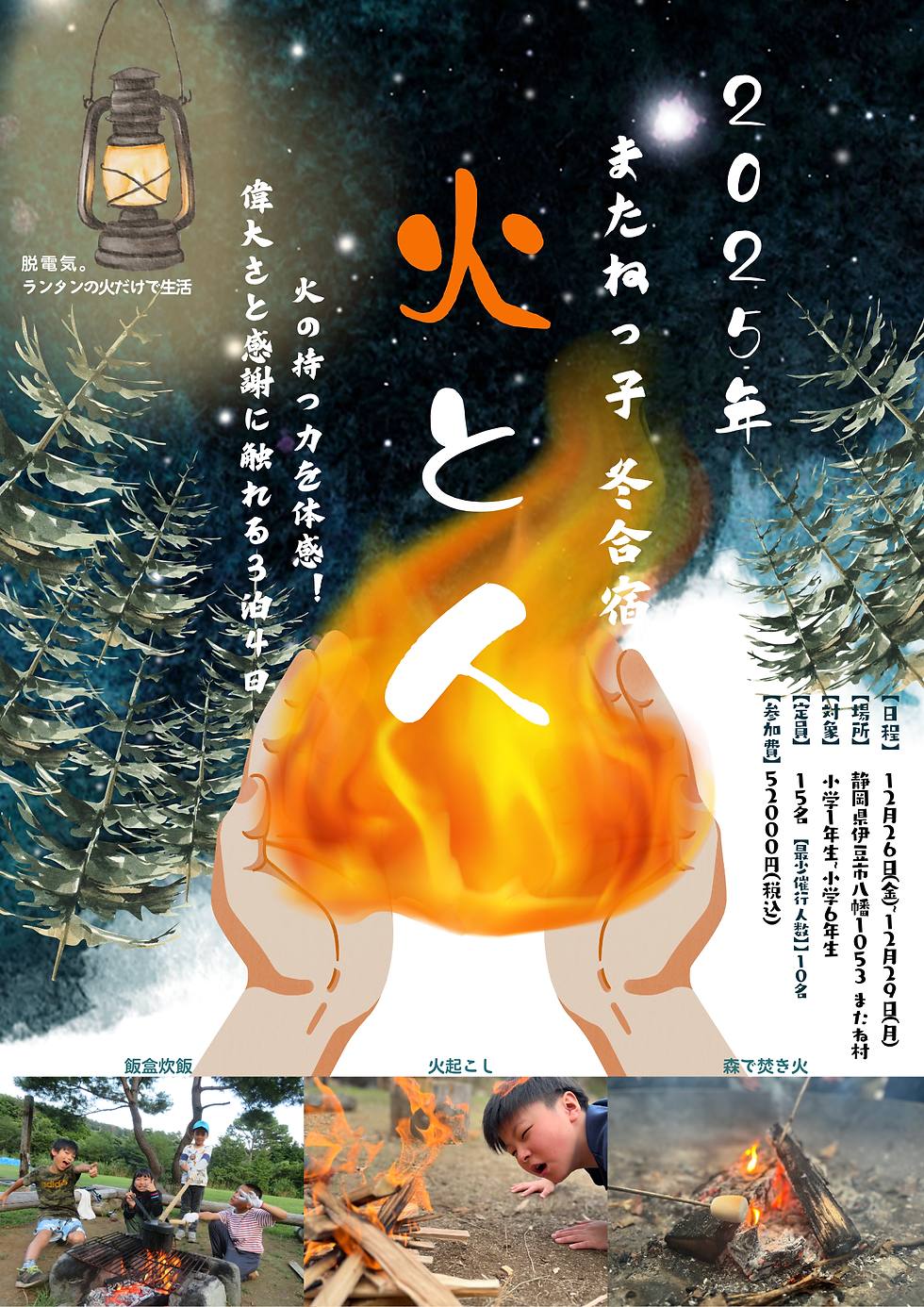 火の偉大さや恐ろしさを体感しながら人々はどう暮らしてきたのかを学ぶ3泊4日間です。
